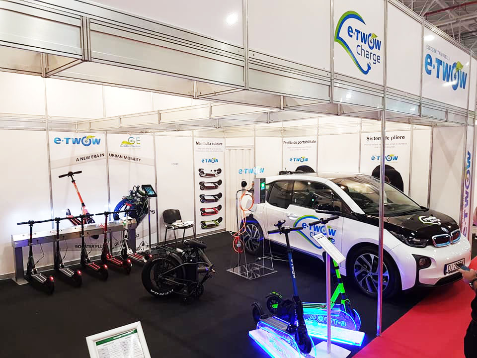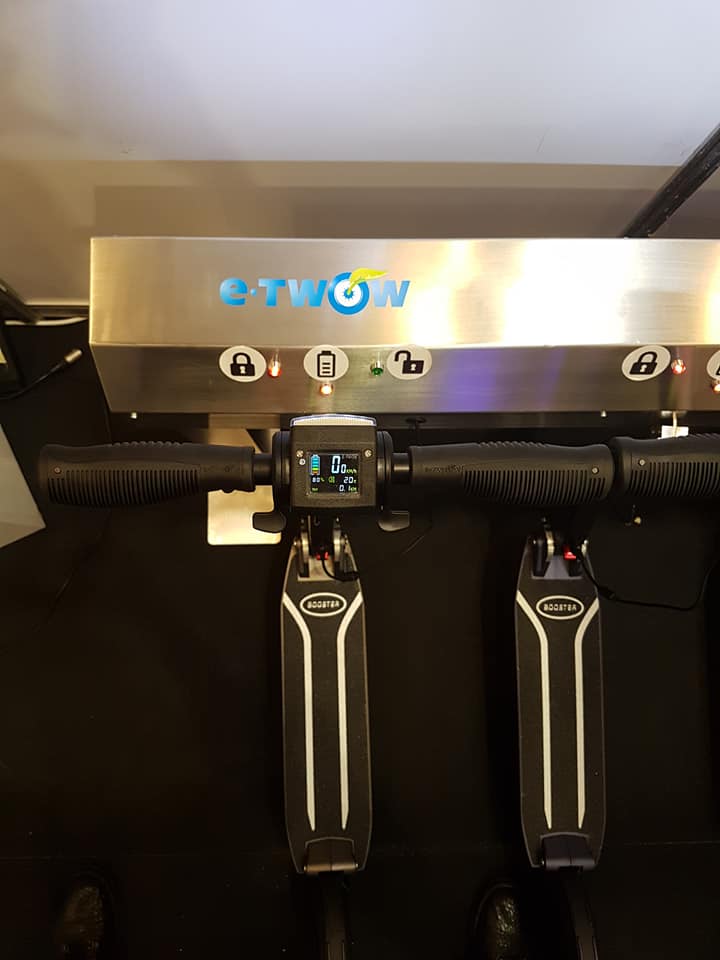 Stația de încărcare auto E-TWOW Charge și Stand-ul de închirieri cu încărcare și aplicație mobilă, E-TWOW Smart Mobility.