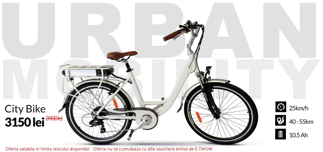 In aceasta vara ai ocazia de a achizitiona cu un super pret bicicleta electrica City Bike de doar 3150 lei, redus de la 3900 lei.