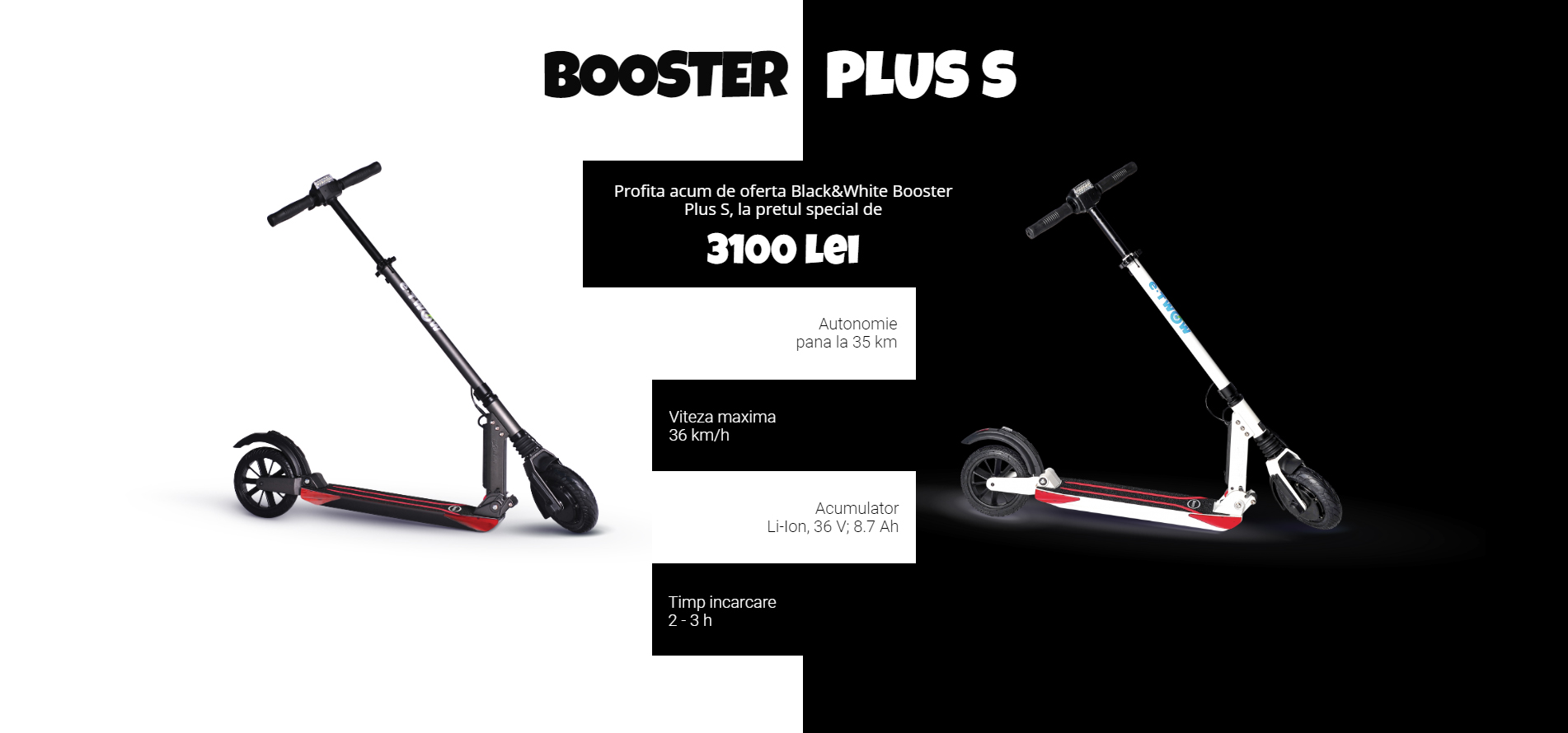 Alb si negru nu ies niciodata din stil! Profita acum de oferta noastra Black&White, si beneficiezi de o reducere de 500 lei la Booster Plus S!🛴☯️