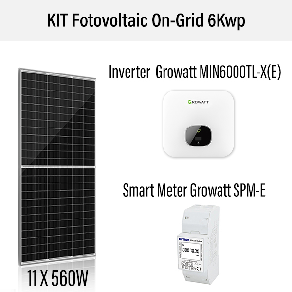 Kit 6 kW compus din 11 panouri 560W Restar Solar (Resun) + invertor Growatt monofazat MIN6000TL-X(E) + Smart Meter Growatt SPM-E