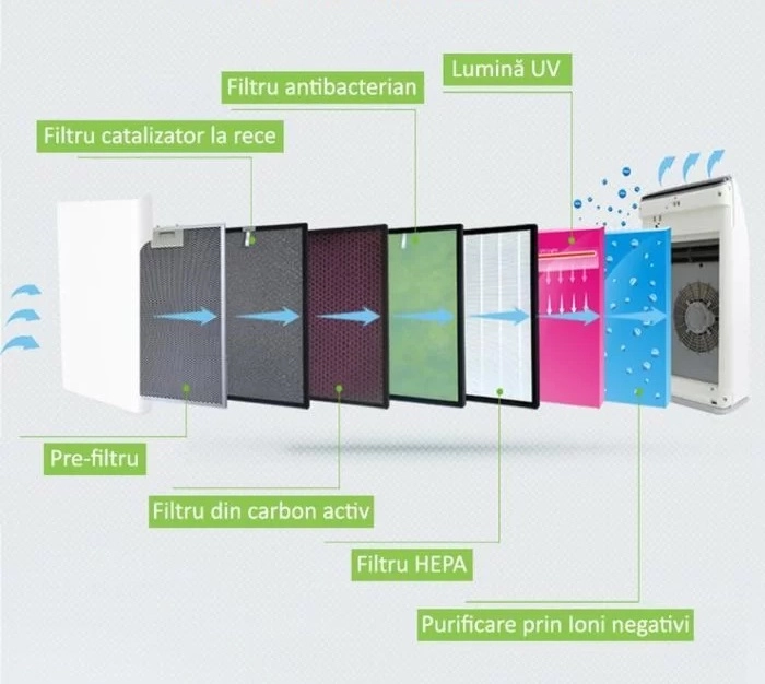 Sistem de purificare a aerului in 7 trepte (5 filtre + Sterilizare Ultraviolete+Ionizator aer)